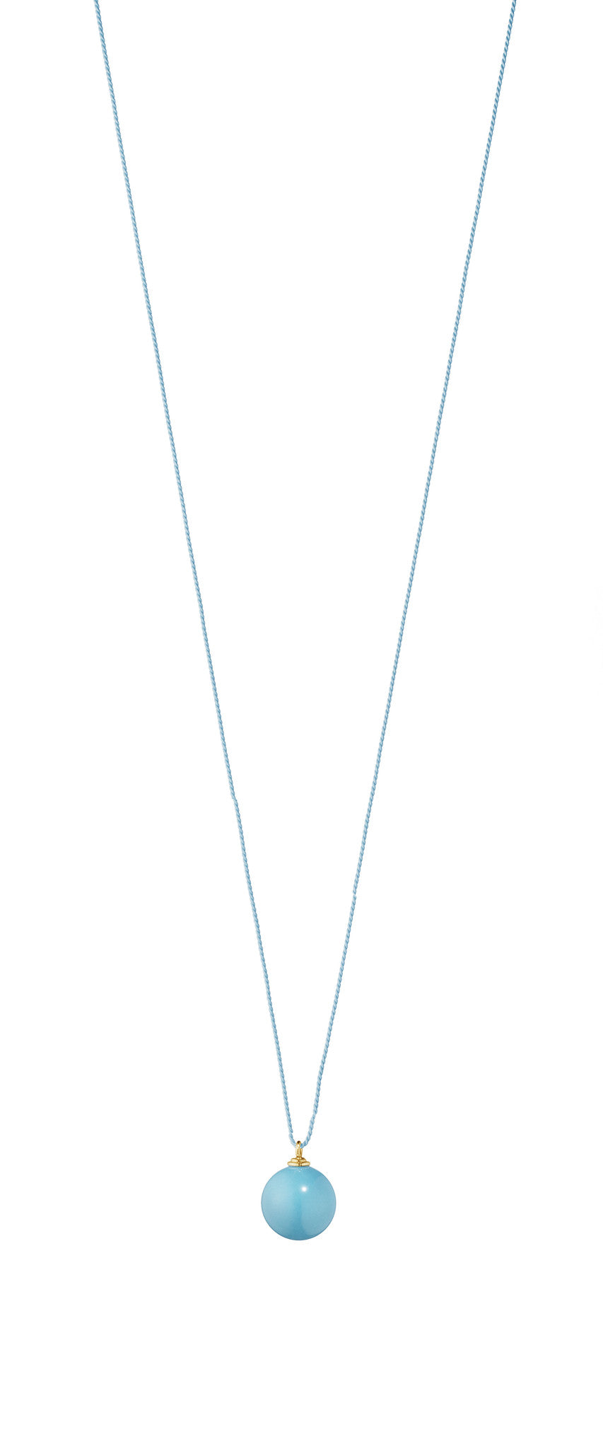 Big bubble turquoise pendant with 18kt gold detail on silk thread. More colors available.