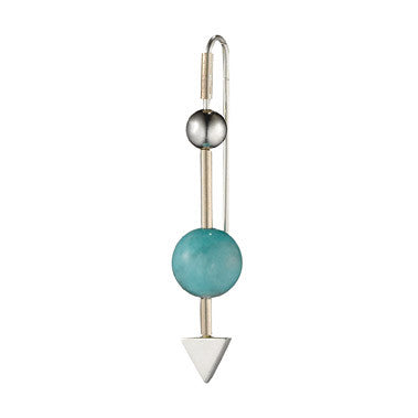 Arrow earring in silver with amazonite and silver balls.