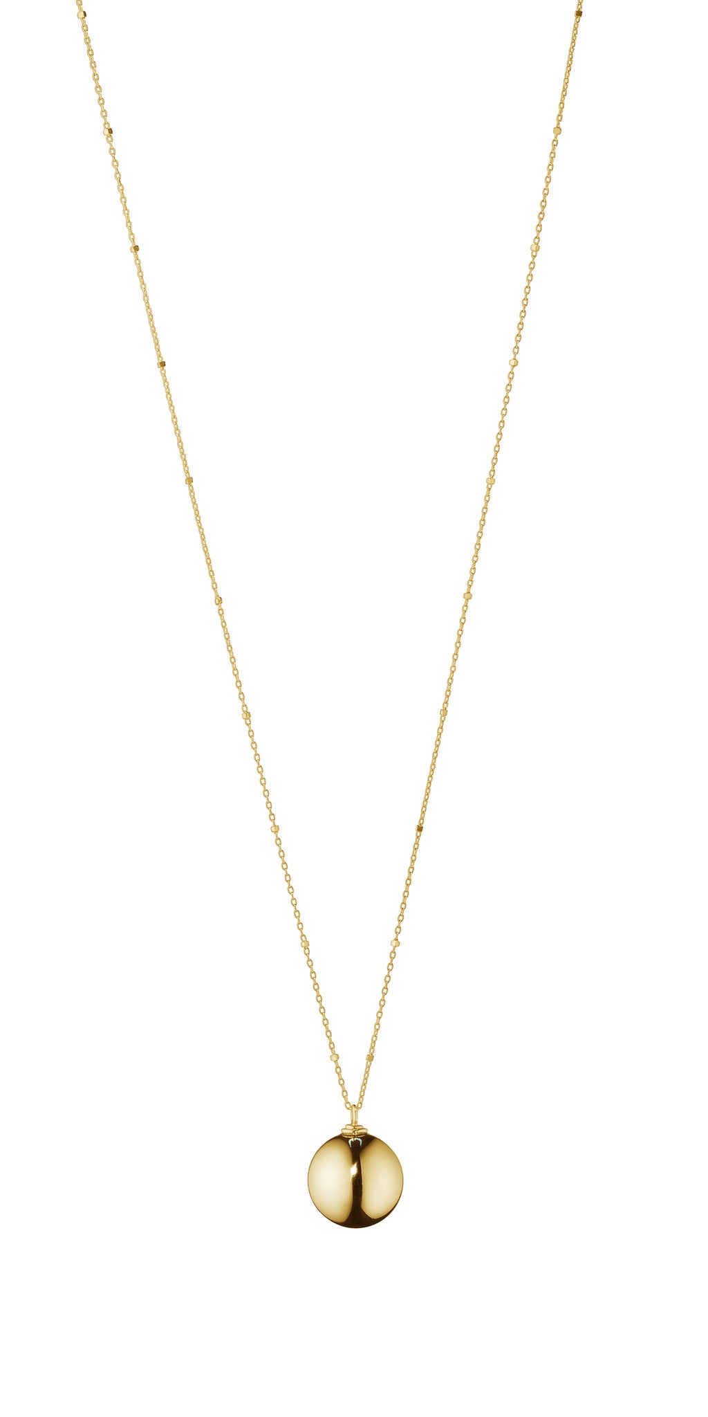 Solid 18kt. gold bubble pendant on delicate 18kt. gold chain with tiny blank squares. The chain is 58 cm.