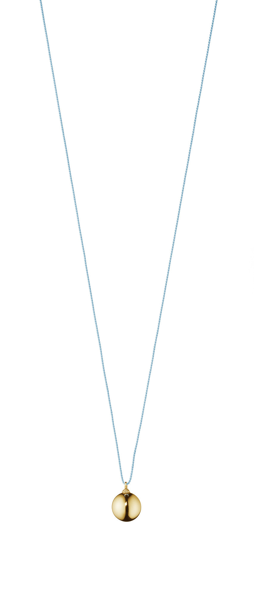 Solid 18kt. gold bubble pendant on silk thread. More colors available.