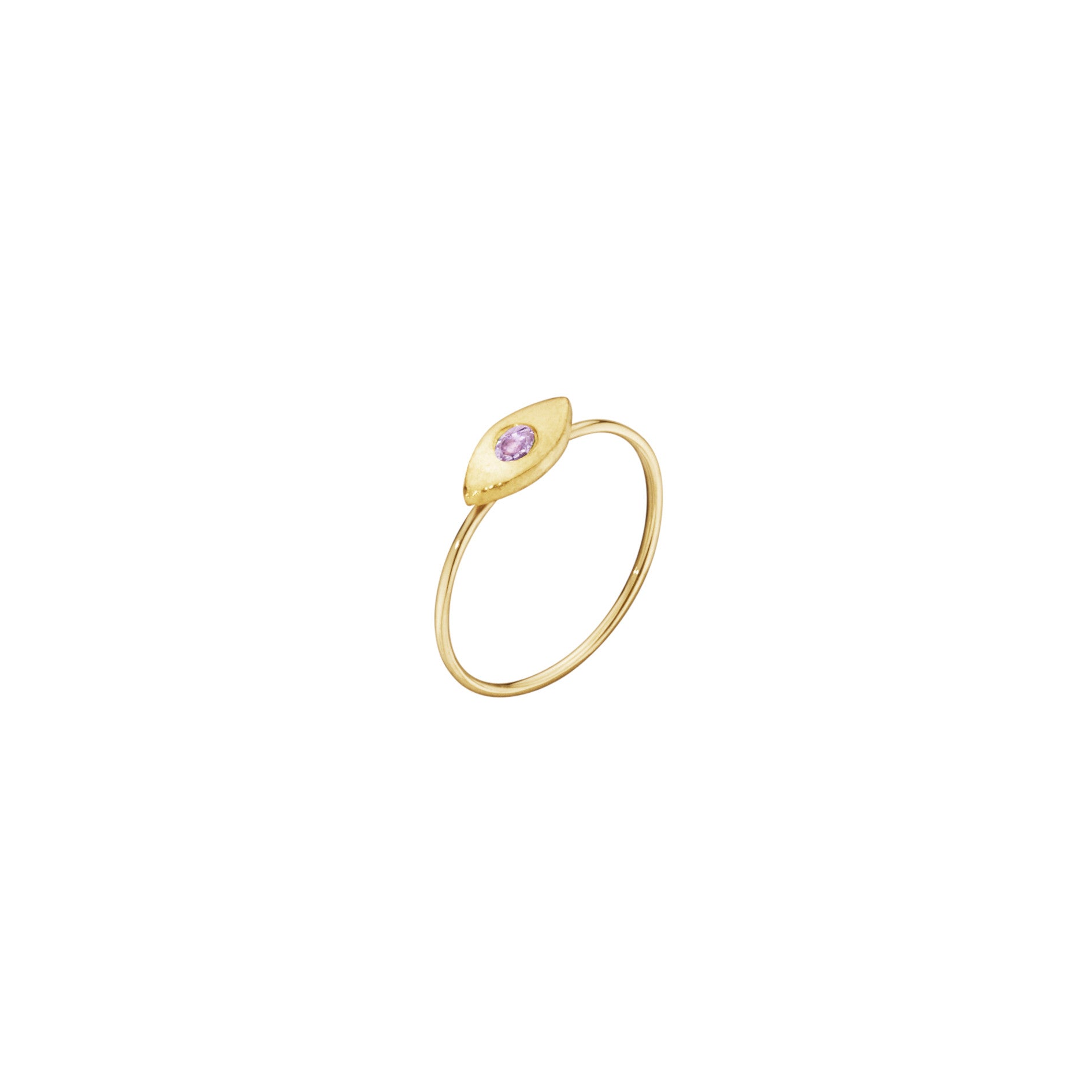 18kt. gold ring with 24kt. gold eye and pink sapphire. The pure 24kt. gold gives a special soft look.