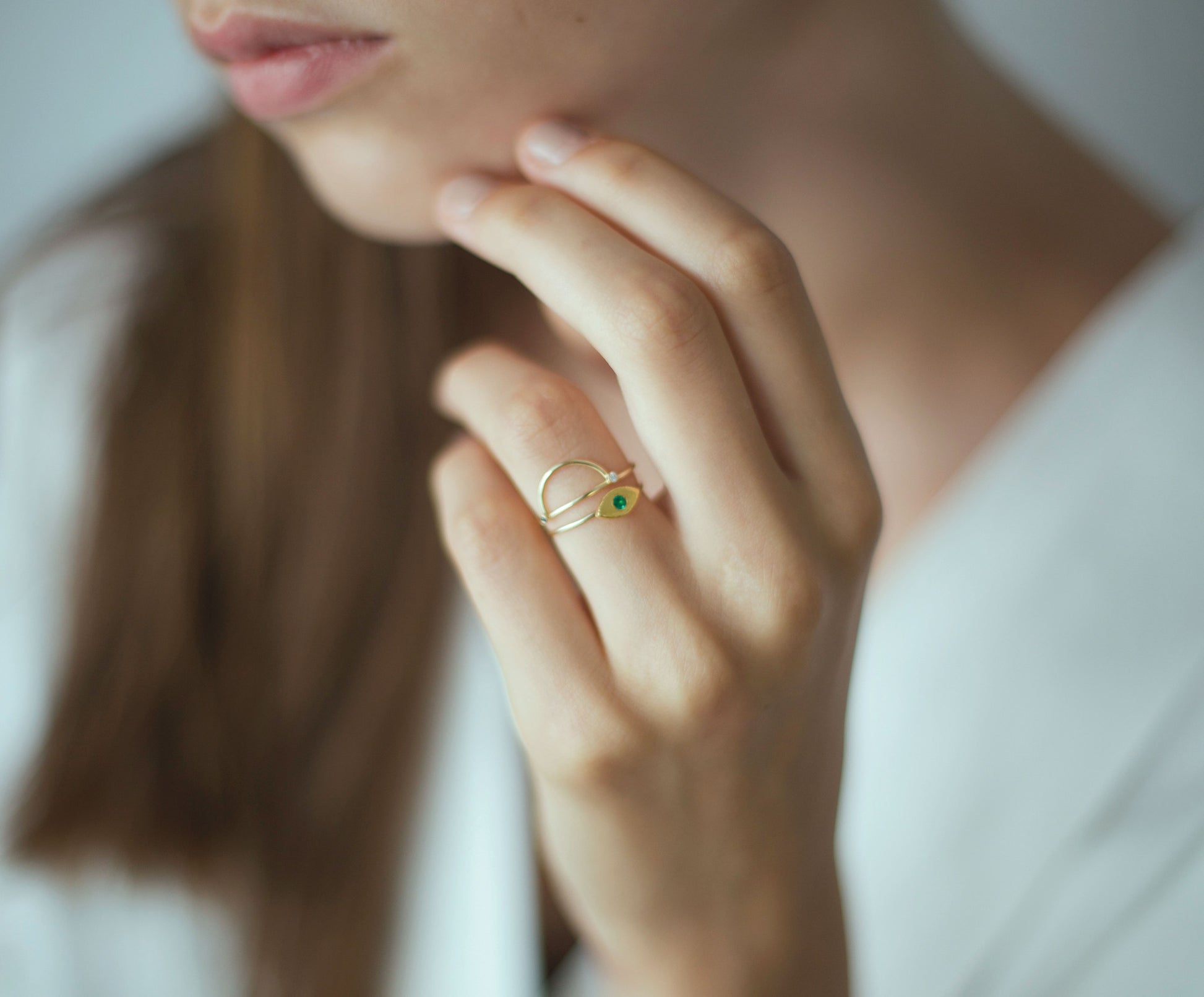 18kt. gold ring with 24kt. gold eye and 0,05ct. diamond. The pure 24kt. gold gives a special soft look.