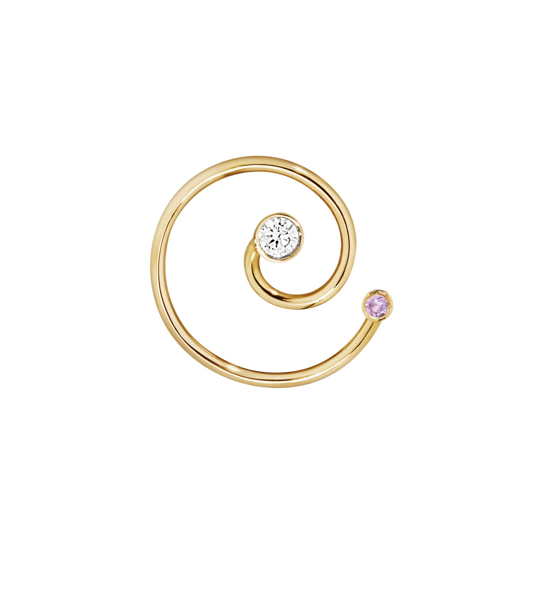 Spiral earstud in 18kt. gold with 0,06ct. diamond and pink sapphire.