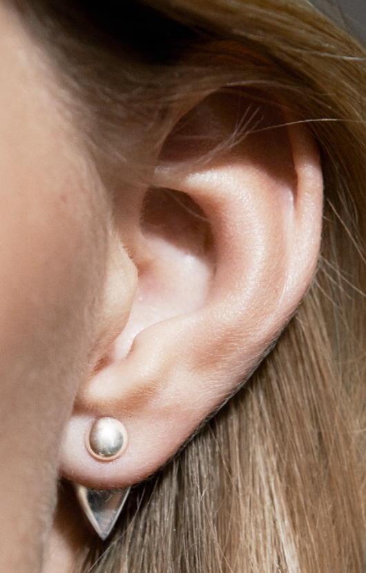 Drop earstud in silver. Consisting of two pieces, to be combined.