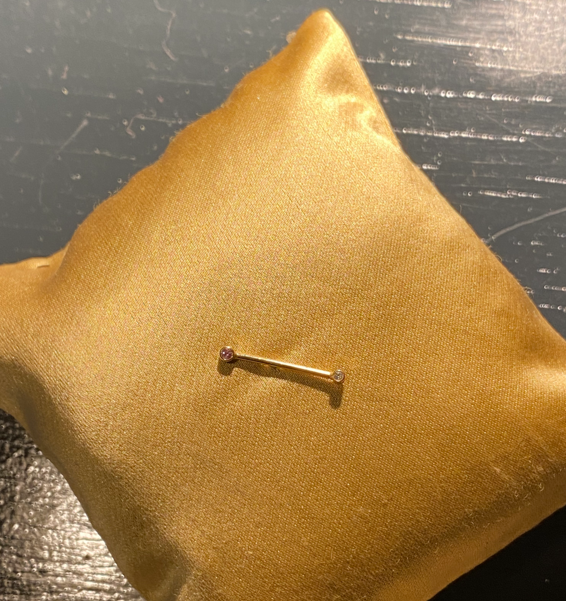 Mini Sun-ray with pink sapphire and tiny diamond.