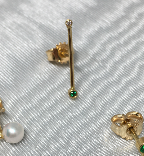 Small 18 kt gold with diamond and emerald.