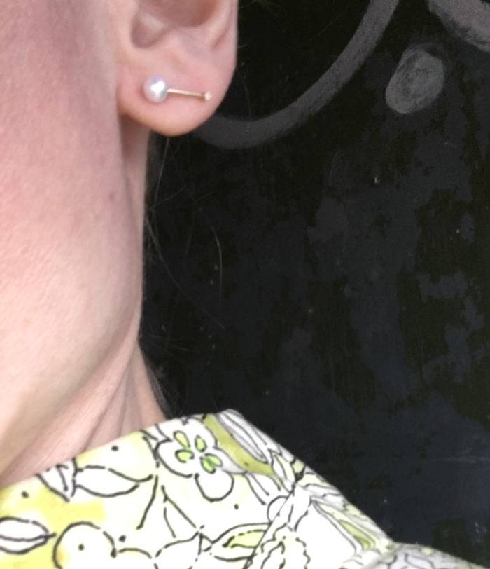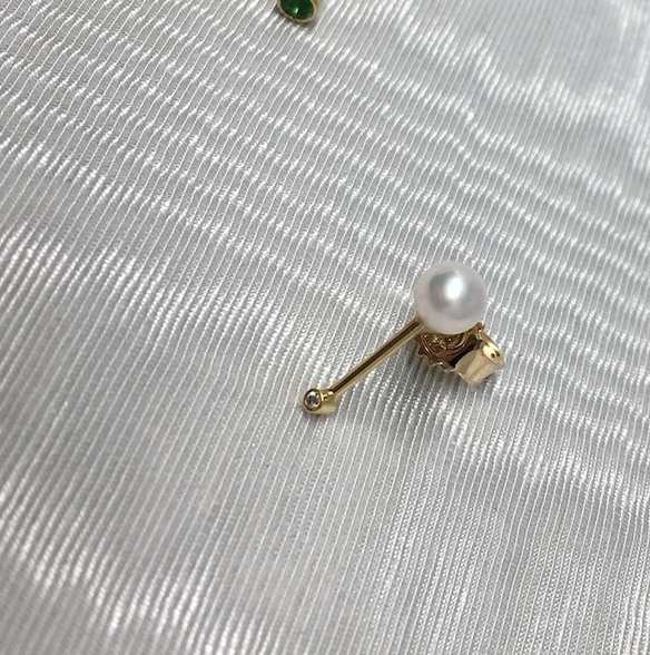 Small 18 kt gold earring with tiny diamond and freshwater pearl.