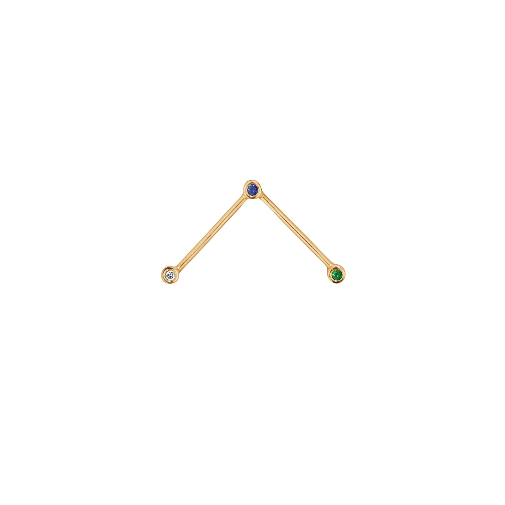 18kt. gold earring with sapphire, emerald and 0,01ct. diamond. Clean and colorful.