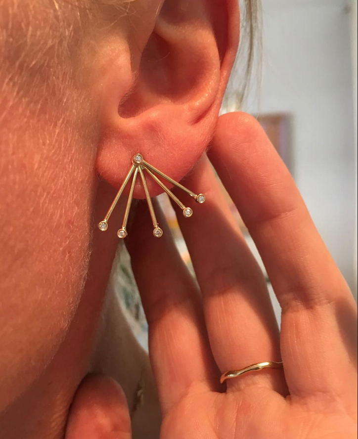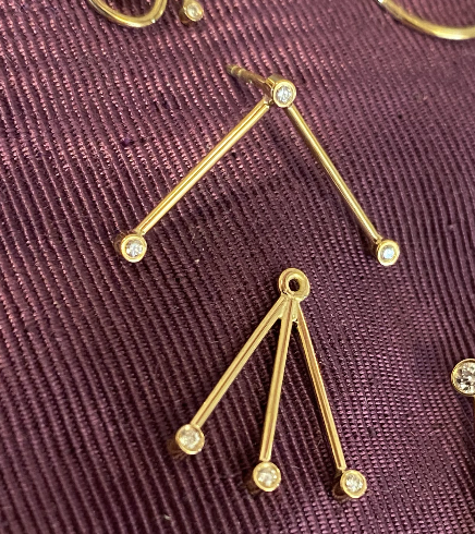 Playful earring in 18kt. gold with 0,06ct. diamonds. Consisting of two pieces, to be combined or worn with other earrings