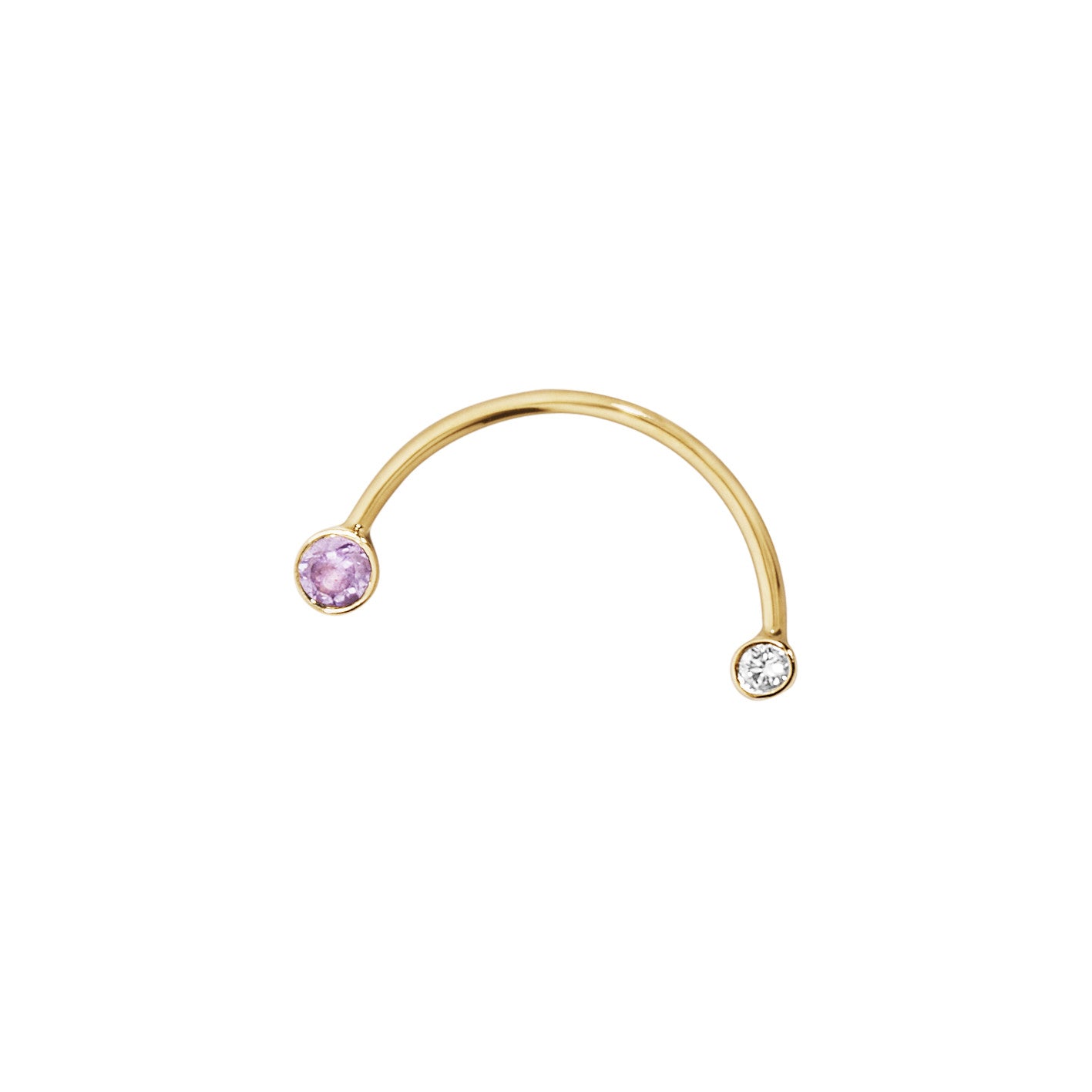 Rainbow earring in 18kt. gold with pink sapphire and 0,01ct. diamond.