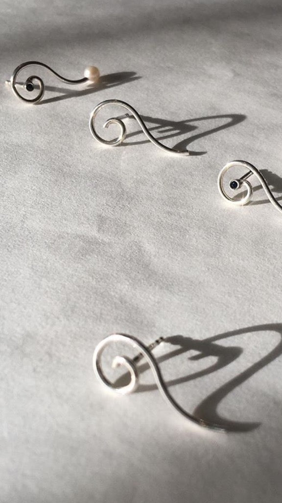 Silver earring with blue sapphire and freshwater pearl or plain.
