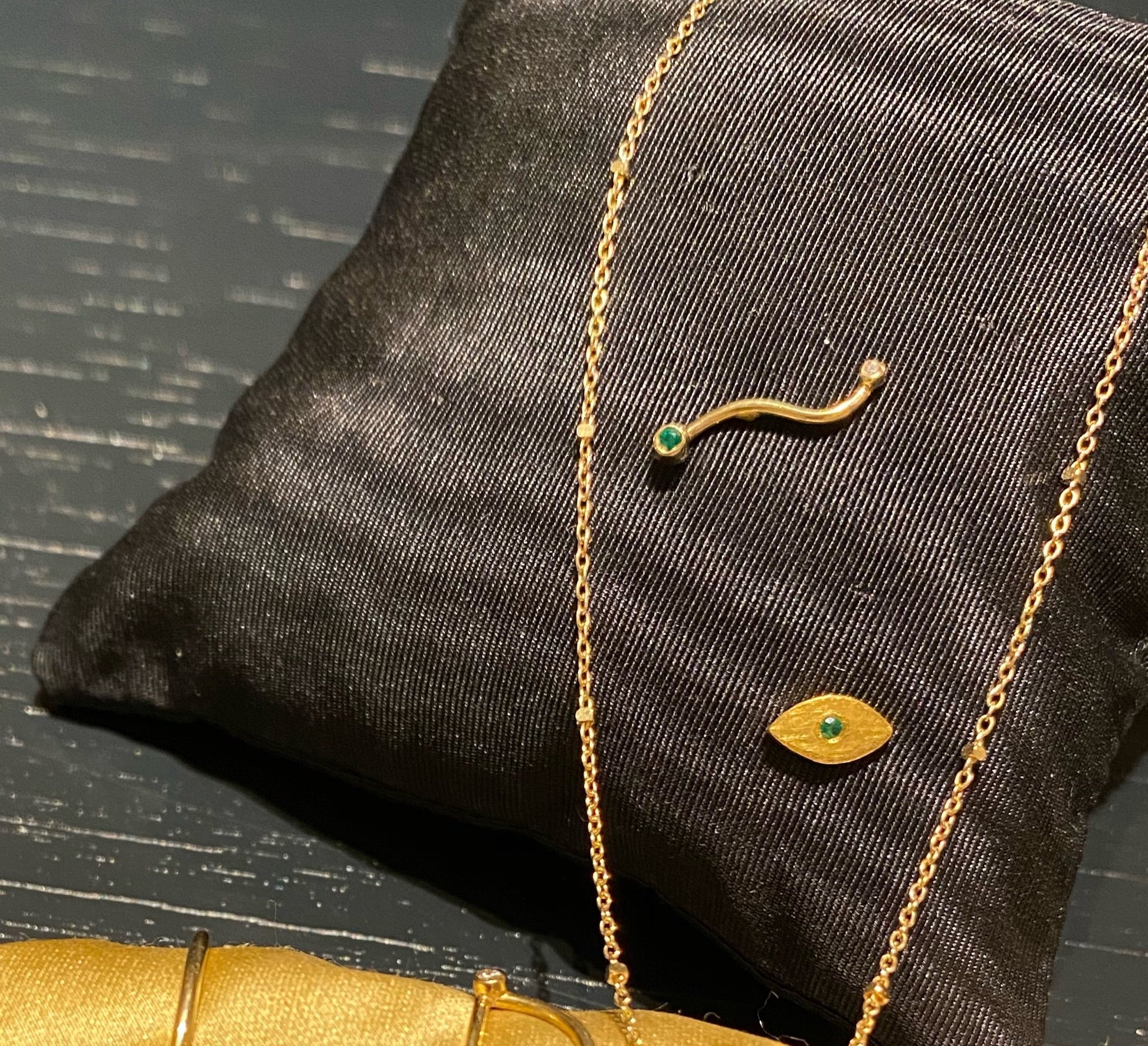 SMALL CURVE WITH EMERALD AND DIAMOND